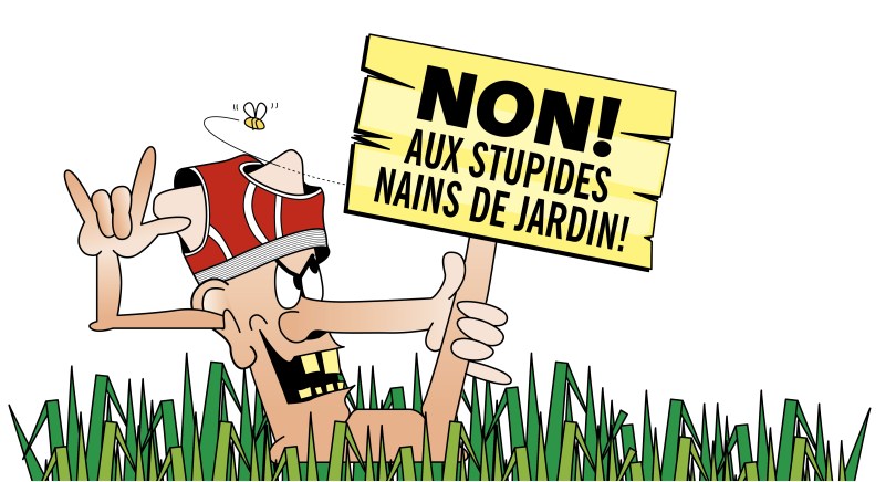 Je ne suis pas certain de ce qu’on pourrait venir installer dans ma cour inopinément sans que je m’en aperçoive, je vis dans un trou perdu et je suis loin de la rue quand même, mais force est-il d’admettre qu’un rien risquerait d’enflammer ma dissension sociale, d’allumer le NIMBY ou le BANANA en moi. Je ne parle pas ici des horribles statues de jardins qu’on tente de nous imposer dans les grandes surfaces, des classiques flamants roses en plastique ou des petits nègres qui pêchent dans le gazon, des marguerites illuminées nuitamment au solaire, des faces d’hurluberlus à coller au tronc des arbres, des petites fontaines qui ont de féériques petites lumières de toutes sortes de couleurs en alternance le soir, tout ceci est à la limite acceptable et inoffensif.