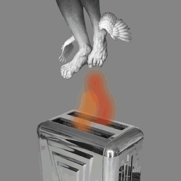 Estomac creux n’a point d’oreilles, dit le dicton. Entre autres, rajouterais-je, et qu’en est-il du génie? Lui en reste-t-il un peu dans un de ces moments futiles, inutiles, hors-nos-vies, hors-nos-corps et insignifiants au possible qui s’amorce dès qu’affamés nous appuyons sur la manette du grille-pain? Le multi-tâches tôt le matin très peu pour moi, je tombe alors dans le gouffre-néant de l’attente, l’esprit dopé par l’odeur montante du bon pain. Instant merveilleux toutefois pour la pensée en goguette, pour cogiter, rêvasser, l’homme du matin court-vêtu allant même jusqu’à se gratter béatement côté couilles, sa soeur sous la mamelle.