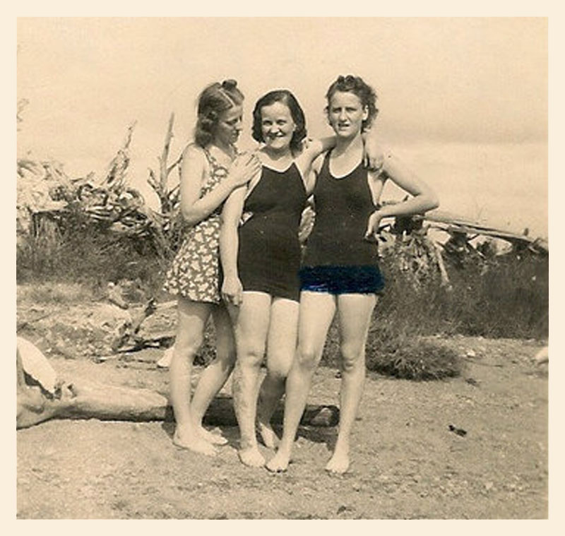 Trois superbes pépées à la plage, trois soeurs, Colombe, Hélène et ma mère Isabelle. Vous aviez remarqué le barbouillage en bleu sur la photo? Je m’amuse à imaginer grand-mère Bureau qui censure au stylo le haut des cuisses de ma mère trop exposées à son goût aux prudes regards de l’époque. On voit où la progéniture d’Isabelle a puisé la libre-pensée, cette belle impudeur de l’esprit. Je lui donne à peu près 16 ans sur la photo, 18 au pire. On est donc entre les deux guerres, elle est née le 26 janvier 1920.