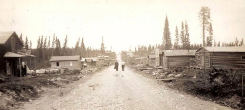 En image-titre : La rue principale de Roc d’Or, alias Putainville, dans les années 1930. Les jours de paie, des prostituées de Montréal arrivaient en train afin de prêter main forte à leurs collègues abitibiennes.